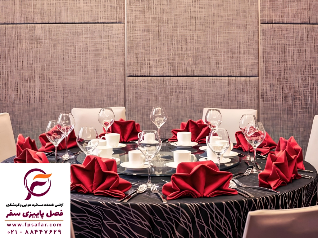 فاصله گذاری فیزیکی در قسمت های غذاخوری | می توان غذا را به محل اقامت مهمان تحویل داد | همه بشقاب ها، کارد و چنگال، لیوان ها و سایر ظروف غذاخوری ضدعفونی شدند | ظروف مخصوص صبحانه | غذا با پوشش ایمن تحویل داده شد