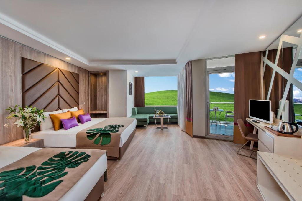 دلفین بی گراند ریزورت با توجه به درختان بزرگ اطراف باغهای وسیع با پرداخت هزینه، هتلی با 5 حمام با حمام خصوصی در پلاژ لارا است. این بارها و رستورانهای زیبا به شما اجازه میدهند صفحهنمایش رستوران جدید و حواسپرتی خود را تزئین کنید.