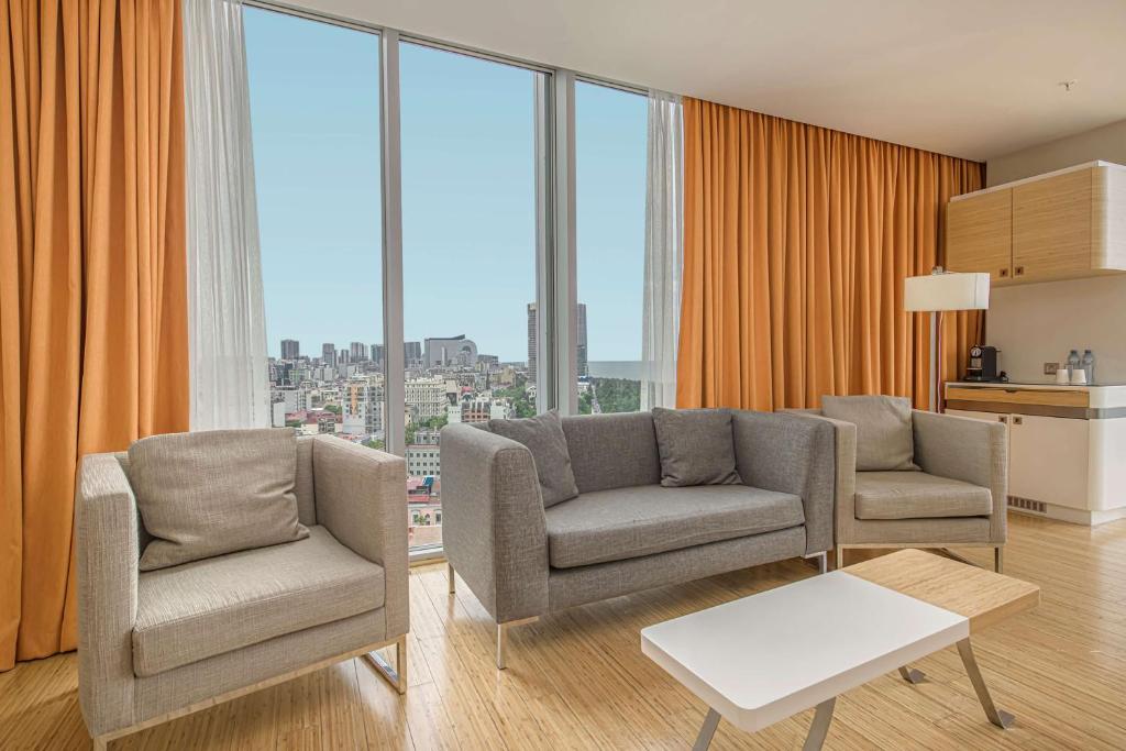 هتل رادیسون بلو باتومی، واقع در باتومی، 3 دقیقه با Iveria Plage، حمام های داخلی و خارجی، رستورانی در تراس توت و همچنین اتصال Wi-Fi عالی دارد. اتاقهای بزرگ خارج از نمای بازار، یک تلویزیون روی صفحه و یک دستگاه کافه نسپرسو را نمایش میدهند. هتل رادیسون بلو باتومی برچسب زیست محیطی Green Key را دریافت می کند و گواهینامه امنیتی و خدمات تحویل را به Safehotels اعمال می کند.