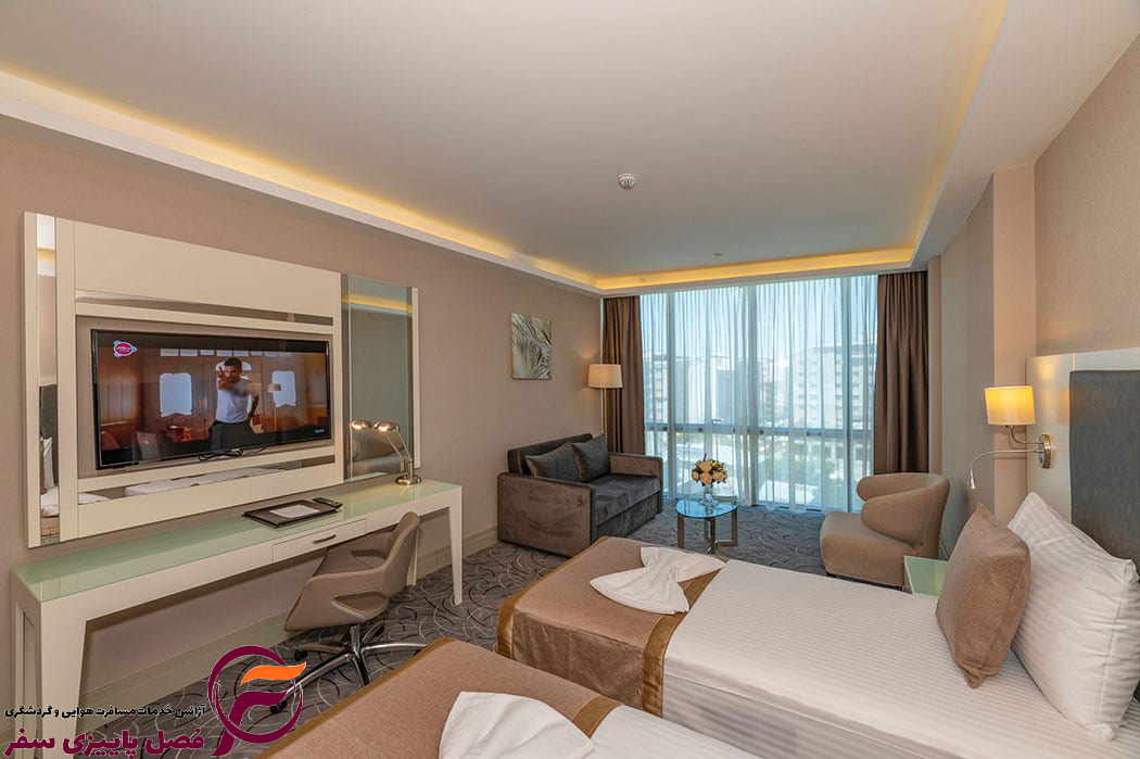 درباره هتل : هتل کانفوریوم واقع در شهر وان ترکیه و فاصله ی ۲ کیلومتری با موزه ی وان، ارائه دهنده ی اقامت به همراه رستوران، پارکینگ اختصاصی رایگان، سالن ورزشی و بار می باشد. هر اتاق این هتل ۵ ستاره دارای چشم انداز دریاچه بوده و میهمانان می توانند از دسترسی به سالن استراحت مشترک، اسپا و مرکز سلامت بهره مند شوند. این هتل ارائه دهنده ی خدمات پذیرش ۲۴ ساعته، خانه داری و صرافی به میهمانان می باشد.