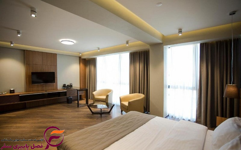 هتل دارای 91 اتاق است که دارای دکوراسیون مدرن، نورگیری مناسب و رنگهای گرم هستند