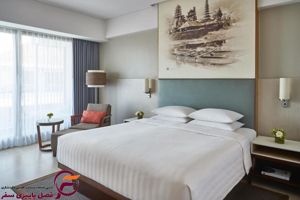 Courtyard by Marriott Bali Seminyak یک استراحتگاه مجلل در فاصله 5 دقیقه پیاده روی از ساحل Seminyak ارائه می دهد. این هتل دارای استخر روباز، مرکز تناسب اندام و اسپا است و سرویس رفت و برگشت رایگان به ساحل سمینیاک را ارائه می دهد. یک رستوران در محل موجود است، در حالی که WiFi به صورت رایگان در همه مناطق در دسترس است. اتاقهای مجهز به تهویه مطبوع که دارای فضای داخلی مدرن هستند، دارای تلویزیون کابلی صفحه تخت، پایه آیپاد و گاوصندوق است. میهمانان می توانند در تراس یا بالکن خصوصی استراحت کنند و از چشم انداز فضای سبز لذت ببرند. مینی بار و کتری برقی نیز از جمله امکانات رفاهی اتاق هستند. Courtyard by Marriott Bali Seminyak 15 دقیقه با ماشین تا میدان Seminyak و خیابان Oberoi فاصله دارد، در حالی که فرودگاه بین المللی Ngurah Rai 30 دقیقه با ماشین فاصله دارد. این هتل با پذیرش 24 ساعته، امکانات نگهداری چمدان و امکانات جلسه/ضیافت در محل دارد. کارکنان می توانند ترانسفر فرودگاهی، اجاره خودرو و خدمات نگهداری از کودکان را با هزینه اضافی ترتیب دهند. خدمات خشکشویی نیز ارائه می شود. رستوران Seminyak Kitchen و بار استخر انواع غذاهای بین المللی را سرو می کنند. غذاها را نیز میتوانید در خلوت اتاقهای مهمان میل کنید. زوج ها به طور خاص این مکان را دوست دارند - آنها به آن برای یک سفر دو نفره امتیاز 9.3 دادند.